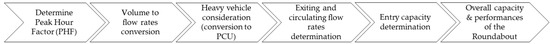 In the context of marine traffic, road-based principles are applied to address the challenges in high-traffic and high-risk collision areas. The following steps, according to [11], were used to perform roundabout capacity procedures, as depicted in Figure 2.