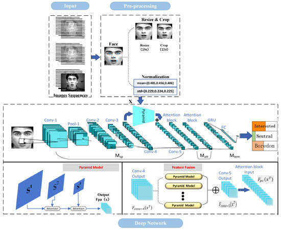 In reference [33], we propose a cascade attention-based facial expression recognition network for classifying facial expression sequences within video content. During preprocessing, we segment the video sequence into T segments, choosing a random frame from each segment. This results in a selected T-frame image sequence X, which serves as input to the neural network for facial expression feature extraction.