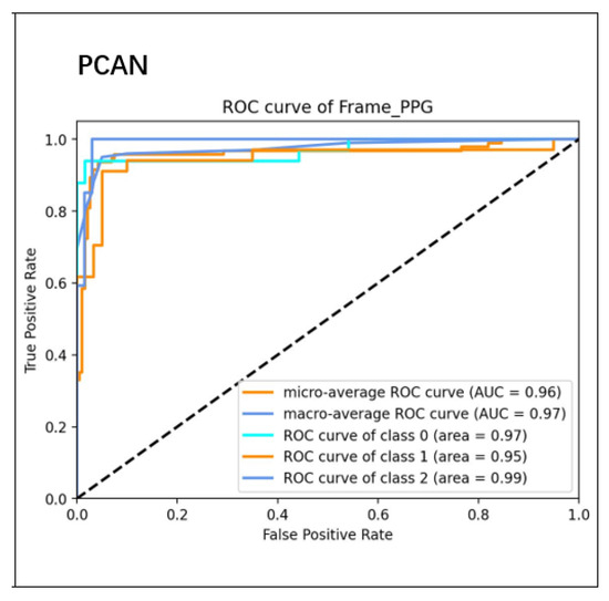 The ROC curve in Figure 13 reveals that the average AUC area of the PCAN (Add) method reached 0.97, indicating that the model exhibits excellent performance in recognizing learner learning emotions on the self-collected dataset. The experimental outcomes indicate that PCAN networks are more compatible with feature stacking and integration techniques and they can mutually reinforce the benefits of dual-modal data, leading to higher recognition accuracy.