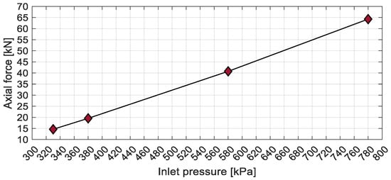 Axial force at varying inlet pressures.
