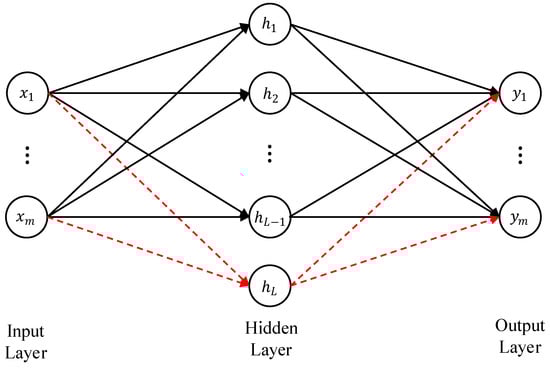 Given a training set , where } represents the input data and } represents the corresponding labels. Specifically, , , . Given a target function , suppose that an SCN with hidden nodes has already been constructed. Set the default error to and the maximum hidden layer node to . The output of the current network is calculated using Formula (1).