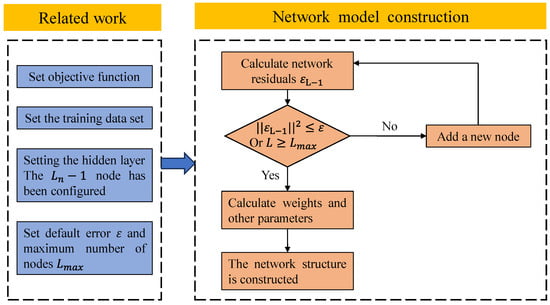 The SCN, an incremental neural network, was proposed by Wang et al. [30] in 2017. The network construction begins with a single node in the hidden layer. In a supervised manner, the input weights and biases of the hidden layer nodes are randomly initialized. The number of hidden layer nodes is then gradually increased, and the output weights are computed using least squares. The SCN consists of input, hidden, and output layers, as shown in Figure 1.