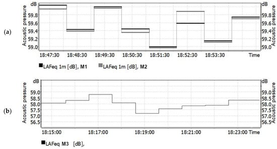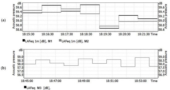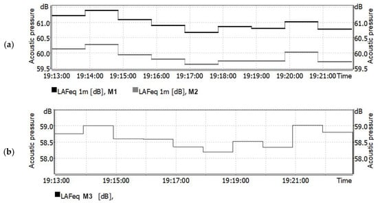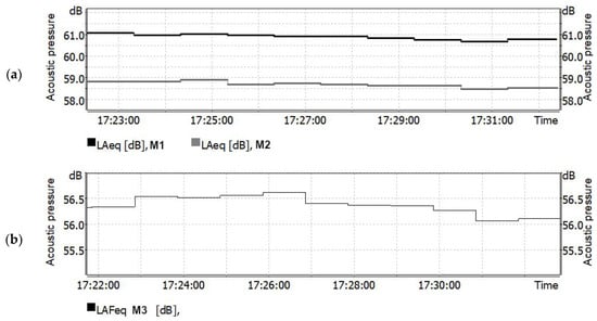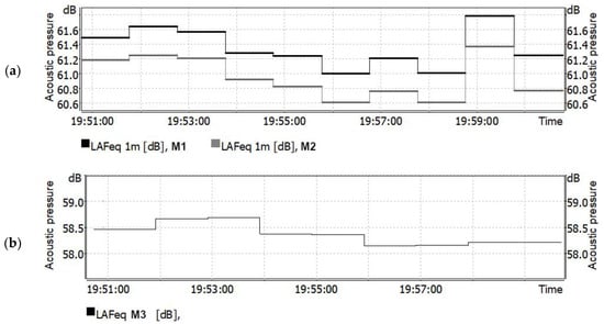Measurement results for cycle B1: (a) microphones M1, M2; (b) microphone M3.
