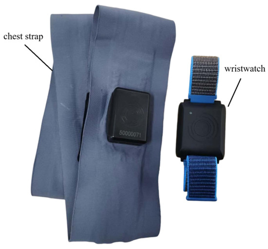 Eight sets of self-measurement data were collected by the laboratory equipment from subjects aged 18 to 35, and each set of data contained 4 channels of PPG signals, 3-axis acceleration signals, and 3-channel ECG signals. The sampling frequency of acceleration signals was 25 Hz, and the sampling frequency of all other signals was 250 Hz. Among them, the PPG signals and acceleration signals were collected by the smart wristwatch, and the ECG signals were collected by the chest strap, as shown in Figure 10. The Chest strap model is SIBET-JCY2.0, and the wristwatch model is MPPB-V1. The PPG data were collected using green LEDs at a wavelength of 540 nm. The data were collected under three distinct states: resting, walking, and running. Specifically, datasets 2, 6–8 correspond to the resting state, datasets 1 and 3 to the walking state, dataset 4 to the running state, and dataset 5 includes the transition from resting to walking and then to running.