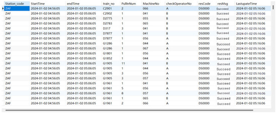 The dataset includes all the entry gate records from 5:04 on 26 November 2023 to 15:26 on 18 January 2024. Passenger entry records are aggregated in 10 min intervals, resulting in more than 2.5 million records. This extensive dataset provides a representative basis for studying dynamic passenger flow and resource allocation challenges in high-speed railway stations. The original data are shown in Figure 2.