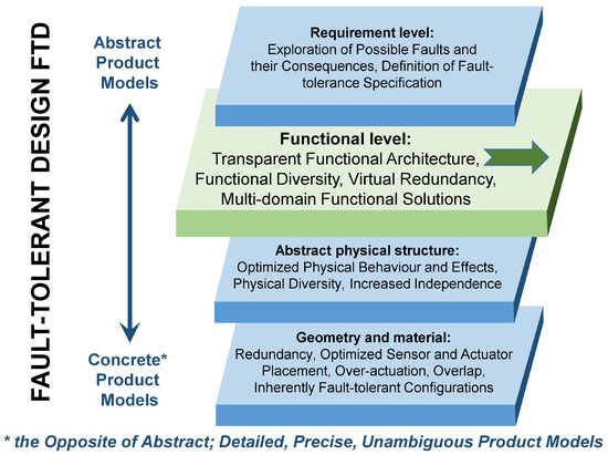 39]. Development engineers need to be able to cope with this complexity in order to be able to realise fault-tolerant design. One key capability is most probably the competence to apply systems thinking—i.e., to be able to abstract, to identify primary functions and flows, to identify essential input/output relations, etc. System models at different levels of abstraction (see also