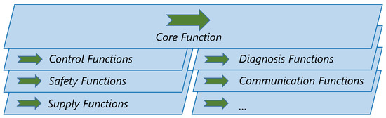 Figure 3, a main function can be extended by other functions, such as control, diagnosis, safety, communication, or supply functions [