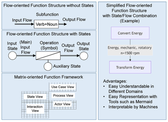 42]. In this paper, the term “function” is used for an abstract description of all kinds of processes and state changes within a technical system that enable the fulfilment of functional requirements. It is important to note that a function is usually extended by other functions (