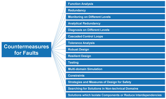 18]. For the exploration of possible faults, it is advisable to investigate both possible failures and faults by using techniques such as Fault Tree Analysis (FTA—[
