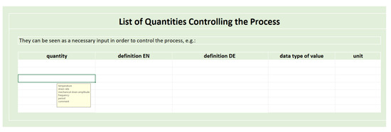- Domain knowledge extraction: the first step when semantically modeling a new process is establishing the necessary vocabulary to describe the knowledge and data to be digitalized. This step is vital and will determine the quality and richness of the digitalized process data. The successful completion of the digitalization process is contingent on efficient communication between domain experts and ontology developers. An interview template was created to overcome the existent knowledge gap between these two involved parties. The interview template enables structured interviews and serves as an information exchange protocol. The output of this step results in the process-specific shared vocabulary being integrated into the domain ontology selected for the concrete use case. The formalization of the new extracted domain-specific vocabulary into an existing ontology (or into a new domain ontology module) is then conducted with the help of the software Protégé [37] or a customized Python script;
