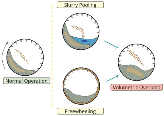 Understanding the types of overloads in SAG mill operations is crucial for developing predictive models to enhance efficiency and safety. Based on McClure et al. [16], overloads are categorized into three primary types, each with unique causes and impacts on mill performance (Figure 1).