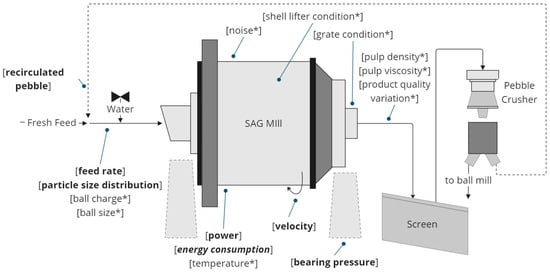 - Apelt, T.; Asprey, S.; Thornhill, N. Inferential measurement of SAG mill parameters. Miner. Eng. 2001, 14, 575–591. [Google Scholar] [CrossRef]