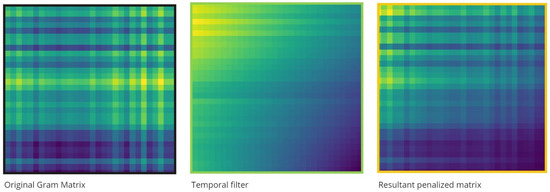 Effect of temporal filter over Gram matrix sample. This matrix was reduced in dimension to clarify the effect in this document.