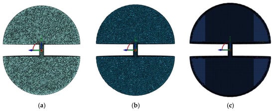 A comparison of the distribution of meshes in the cross-section of the model is shown in Figure 3, and Figure 4 shows the distribution of pressures in the tested volume.