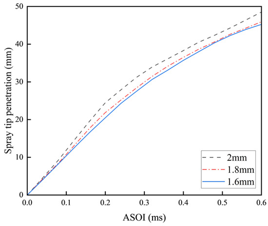 - Shi, Z.; Lee, C.-F.; Wu, H.; Li, H.; Wu, Y.; Zhang, L.; Liu, F. Effect of nozzle diameter on macroscopic spray behavior of heavy-duty diesel engine under cold-start conditions. At. Sprays 2019, 29, 741–762. [Google Scholar] [CrossRef]