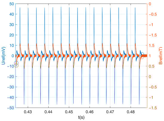 To obtain the time-domain expression for the reflected magnetic induction intensity of the Hall sensor under actual conditions, we first use MATLAB 2023b to perform the fast Fourier transform (FFT) on and , respectively. After multiplying the two results, we apply the inverse FFT (IFFT) to the product. Finally, the inverse transform result is combined with the remaining part through series operations.