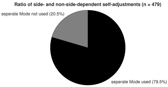 Figure 13 shows that in 79.5% of all self-adjustments, different settings were created for the two sides. Among the bimodal-aided participants, 85.8% exhibited a higher proportion of programs with differing settings between the sides compared to bilateral participants, at 71.1%.