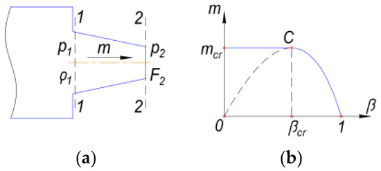 where mcr is the critical value of the mass flow rate, kg/s, that corresponds to the critical pressure ratio βcr (in a range of 0.51.0) when the supersonic mode occurs.