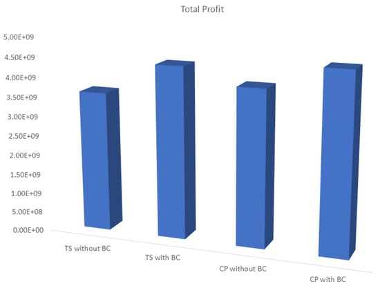 The estimated profit of the players in the TS with blockchain are given below. The proof is given in the Appendix A.1.