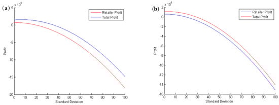 The retailer acquires q from the producer. The initial integral represents the retailer’s projected profit, assuming that the existing stock surpasses the consumer demand. The retailer meets the demand and incurs a holding cost, denoted as , for each unit that remains unsold. The subsequent integral illustrates that the retailer faces a stock-out expense when they deplete their current stock, quantified as , for each unit that remains unfulfilled.