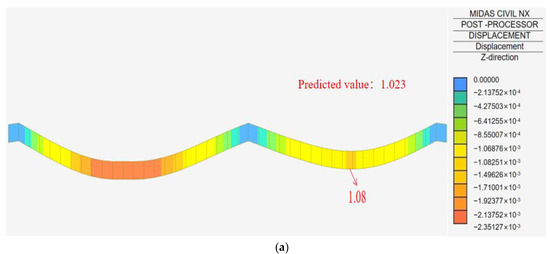 Figure 13 shows the dynamic deflection of a vehicle simulated to pass through the mid-span measurement point at a constant speed ranging from 30 to 60 km/h in the finite element software MIDAS CIVIL NX.