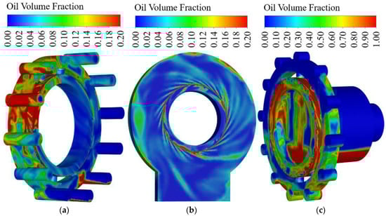 Oil–air two-phase distribution. (a) Chamber 1; (b) Chamber 2; (c) Chamber 5.