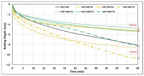 - Based pm the results of the performance of the asphalt mixture mixed with an SAP, when the SAP content was less than 7% the mixture design criteria of the mixture were satisfied. In the case of indirect tensile strength, the Marshall stability and crack resistance of the Non-SAP asphalt mixture had better results than the asphalt mixtures with SAP. However, the dynamic stability results showed that the rutting resistance increased by more than three times for asphalt mixtures with the SAP compared to the Non-SAP asphalt mixture.