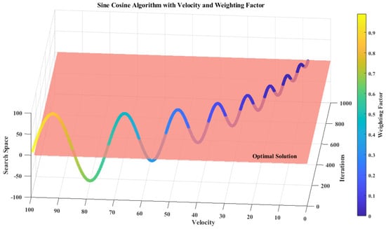The Sine–Cosine Search Algorithm initially enhances its global search capability by conducting an extensive exploration. However, this approach may encounter the issue of having an excessively large search range, which can lead to boundary violations and an increased number of ineffective searches. To address this concern, a variable helix factor is introduced to dynamically adjust the search range at different stages in order to improve search effectiveness. As illustrated in