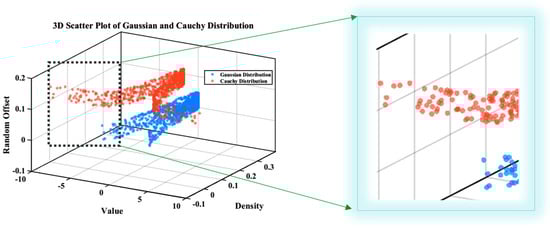 Figure 4, Cauchy mutation increases solution diversity by generating larger search step sizes, thereby facilitating the exploration of a broader solution space and balancing the trade-off between exploration and exploitation. This not only enhances the capability for thorough exploration but also preserves local exploitation ability, facilitating the attainment of a harmonious balance between exploration and exploitation. The improved symbiotic phase update formula is as follows: