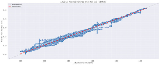 The Gradient Boosting model was chosen as the model to be implemented due to its ability to capture complex, nonlinear relationships and its adaptability to smaller datasets compared to Random Forest and LSTM. During cross-validation, Gradient Boosting demonstrated competitive performance, with its mean squared error being higher than Random Forest but still reasonable. Its ability to iteratively refine errors through its sequential learning process makes it more suited to datasets with intricate patterns. Furthermore, Gradient Boosting’s stepwise construction of decision trees provides valuable insights into feature importance, improving the interpretability of its predictions. Although its standard deviation was higher than that of Random Forest, the model still exhibited strong generalization on the test set. This combination of performance, interpretability, and adaptability, particularly when hyperparameters are finely tuned, makes Gradient Boosting a robust choice. As such, it will be referred to as “the model” throughout the remainder of this study, representing the optimal approach for predictive tool wear analysis.