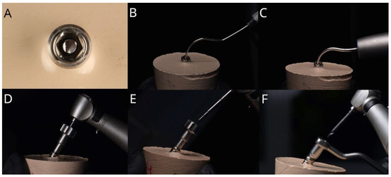 The abutment screws (PXAS, BioHorizons, Birmingham, AL, USA) randomly assigned to the Phibo drilling removal system without irrigation (Phibo, Barcelona, Spain) were removed using a tungsten carbide bur with an implantology handpiece at 850 revolutions per minute (rpm) using a 20:1 reduction in a clockwise movement without irrigation to perforate the coronal surface of the fractured abutment screw (