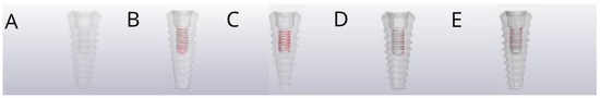 The wear on the internal threads of the conical internal hex implant–abutment connection (4.6 × 12 mm, TLX4612 BioHorizons, Birmingham, AL, USA) was analyzed by comparing the pre- and postoperative STL digital files after aligning the STL1 and STL2 digital files and calculating the volumetric differences (mm