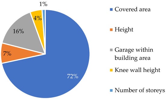 Figure 2 illustrates the relative contribution of five different factors on a building’s usable area. The covered area is the most dominant factor (72%), which is consistent with the results presented in Table 2.