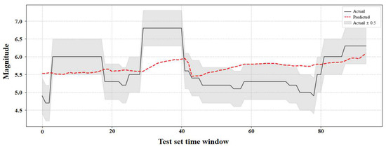 - The magnitude interval-based assessment method proposed in this paper not only focuses on the difference between the predicted and actual magnitude but also reflects the actual impacts that earthquakes may bring. For example, accurate predictions of moderate to strong earthquakes are crucial for disaster prevention and mitigation, while predictions of lower magnitudes assist in designing early warning systems and the rational allocation of resources.