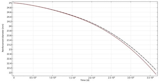 In this case, gamma radiation can be replaced by oxygen diffusion in the concrete structure, which leads to similar values of current density observed during irradiation. This approach ensures more accurate results, close to the experimental data reported in [60,69].
