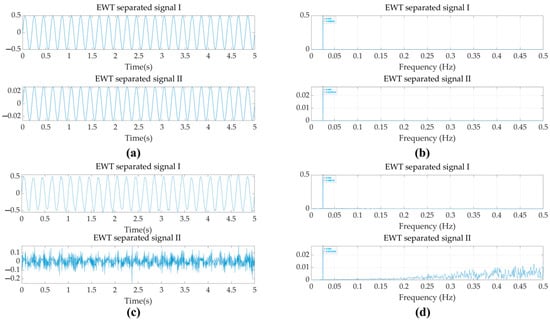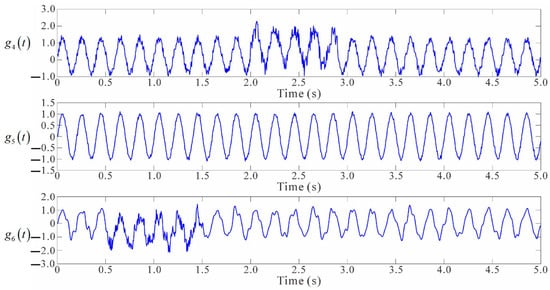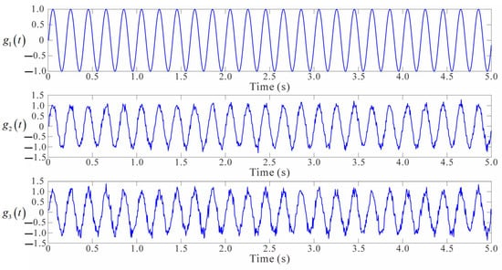 - Keep the remaining separated signals with information close to the principal frequency in the first separated component, expressed as . As analyzed previously, the separated signals, apart from the first component, may contain useful information in the remaining parts. This is an improvement because it replaces the traditional SOBI method of simply deleting all of the separated signal components except for the first one, which leads to the loss of some useful information.