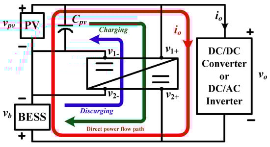 Conventionally, a BESS-integrated PV system consists of two individual two-port power electronic converters [58]. One of them is interposed between the PV module and the load, which is unidirectional, delivering the PV power to the load and/or battery with the implementation of MPPT. The other DC-DC converter, which is bidirectional, is connected to the BESS, and functions as a load power regulator.
