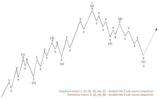 Each wave in Elliott theory can be broken into smaller versions of the same patterns, exhibiting a fractal structure [1], where each wave contains smaller versions of the same patterns and simultaneously forms part of larger wave structures. This hierarchical organization enables traders to analyze market movements across multiple timeframes, from intraday fluctuations to multi-year trends, providing the possibility of understanding market behavior at different scales.