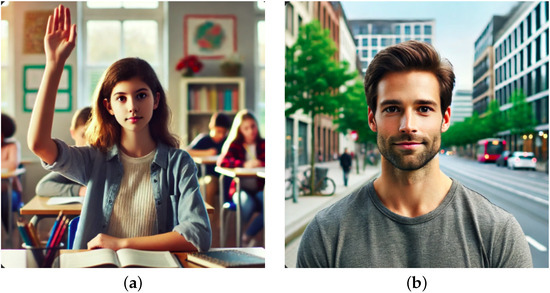 Figure 2b): The environment is a busy street, with buildings and vehicles in the background. The detected person is a young male, possibly an adolescent or young adult. In this context, the chatbot might provide advice relevant to an urban setting, such as navigating traffic or safety tips for a city environment.