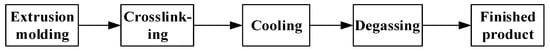In the cable manufacturing process, manufacturers use commercial crosslinked polyethylene insulation material as a raw material. This material is typically composed of low-density polyethylene, a crosslinking agent, and an antioxidant mixture. Cables are processed through extrusion molding, high-temperature crosslinking, cooling, and degassing in multiple steps to produce the finished product, as shown in Figure 2. In this process, many process parameters, such as crosslinking time, crosslinking temperature, cooling time, and degassing time, can affect the macro performance of the final cable insulation.