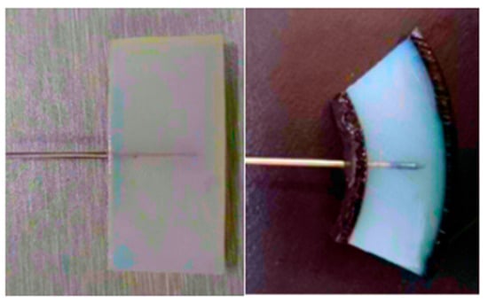 Next, the preform was cut into strips using a cutting tool. The cut surfaces were then polished using sandpaper and a grinder to ensure smoothness and uniformity. A needle insertion machine was employed to needles, each with a tip curvature radius of 5 μm, into the sample with the needle tip positioned 3 mm from the bottom of the sample. After needle insertion, the sample was placed in a vacuum oven at 90 °C for 7 to 8 h to relieve mechanical stress induced during the needle insertion and to remove any cross-linking byproducts. The sample was then left for 20 to 24 h before being removed.