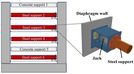 With the development of urbanization, more buildings are constructed near subway lines. Excavation projects adjacent to existing subway lines must not only meet the requirements of excavation construction but also ensure the normal operation and structural safety of subway tunnels [,]. Traditional steel supports only passively control soil deformation and are prone to axial force loss and temperature sensitivity, making them inadequate for strict control requirements [,,].