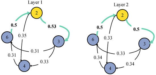 Figure 15 and Figure 16 illustrate the attention weights and feature attribution map between various features, respectively. These visuals provide an interpretative analysis of how the proposed model incorporates attention mechanisms through GAT. Figure 15 shows the attention weight distribution across two layers of a graph attention network (GAT). The nodes labeled 2, 3, 4, and 6 represent the corresponding monitoring points. The weights on the edges indicate the strength of the attention between these nodes. For example, in both layers, node 2 shows a strong connection to node 3 (weights of 0.53 and 0.5), while node 6 has weaker connections to the other nodes, such as 0.31 and 0.35. These weights reflect how the GAT assigns importance to different monitoring points when predicting wall deflection based on spatial relationships.