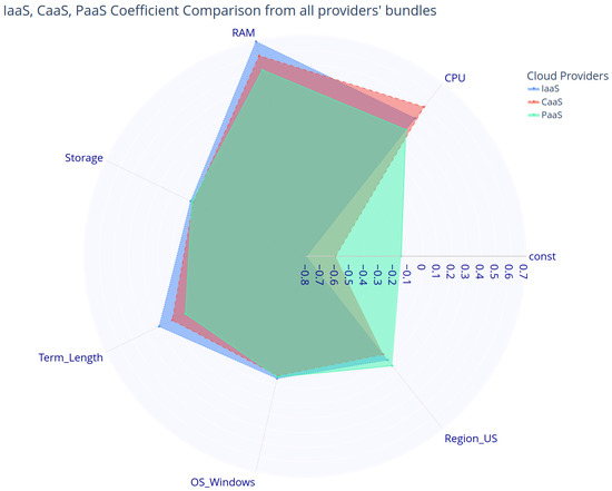 Comparison of coefficients across IaaS, CaaS, and PaaS datasets.