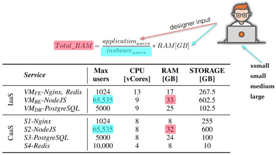 The practical implications of the clustering results are evident in designing applications for IaaS and CaaS platforms. Figure 8 illustrates how the clustering analysis can be applied to a demo application, where total resource requirements (CPU, RAM) are compared across services from different providers. This enables cloud architects to choose between IaaS and CaaS service types and to select the most appropriate service configurations based on the required specifications while considering the associated costs.