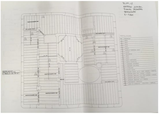 This is a rehabilitation project for the Colomina palace, commissioned by the CEU San Pablo to the architect Francisco Esquembre Casañ, dated May 1995 []. After having inspected the building, in his descriptive report, the architect states that from 1863 until 1906 various minor interventions by Manuel Ferrando are noted. From that date onwards, the following documented interventions, all of them also minor, were carried out for the same property by other master builders (14 October 1913): Manuel García for the replacement of 7 joists, and on 21 July 1919, Ricardo Cerdá taking the downpipes back to their original position to clean up dampness [] (p. 13). Actions are also detected in the 1940s and 1950s of the 20th century, the last being documented in 1980.