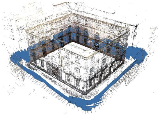 Additionally, to support this historical research, various geomatics techniques were employed to provide a geometric survey of the building in its current form. In particular, terrestrial laser scanning (TLS) and close-range photogrammetry from digital cameras were used, since these methods represent an established, effective, and efficient approach for the 3D metric documentation of built heritage [].
