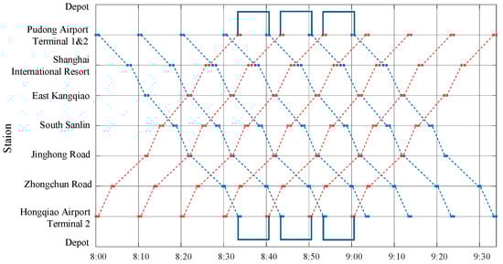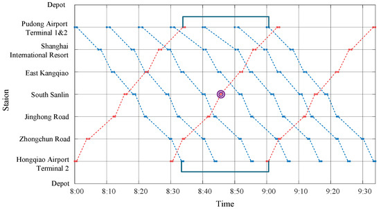 The rail system is usually the first choice for traveling in people’s daily lives because of its punctuality and convenience. Taking the passenger flow of the Shenzhen Metro’s urban rail transport in China as an example, the Automatic Fare Collection (AFC) system recorded over 140 million transactions over a period of 48 days [1]. At the same time, the maximum number of trains running on weekdays is nearly seven thousand. If the timetable is planned appropriately while still satisfying passenger demand, significant unnecessary costs will be minimized [2].