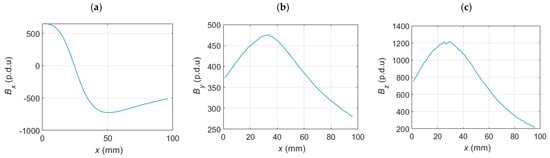 The magnetic transducer is designed to operate in the range of 1 to 10 mT—suitable for applications within this magnetic field range (Figure 1). The sensors must enable measurements of the DC magnetic field and be as compact as possible. The technologies that best meet these criteria are GMR, AMR, and MO. The MO sensor system was previously designed, constructed, and tested; results are presented in [56].