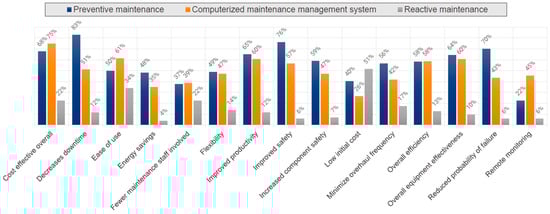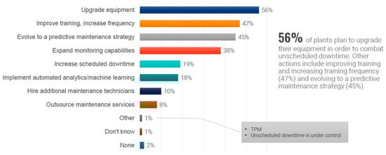 Figure 3 illustrates that the top three most important strategies for reducing UPDT are equipment upgrades (56%), improved training (47%), and transitioning to a predictive maintenance strategy (45%). Based on this information, the concept for designing a maintenance system to address these issues was developed [3].